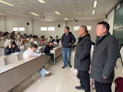 1月5日,吃瓜网 党委书记陆斌、院长孙勇彬巡视期末考试工作,现场了解考试组织,纪律,环境及各项保障措施的落实情况。